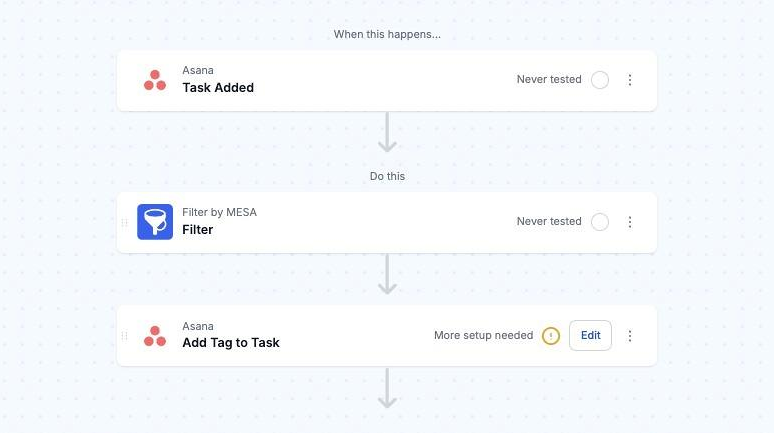 To prevent this, we recommend adding a [Filter](https://docs.getmesa.com/tools/filter) step below your workflow's trigger. The Filter should check for whatever you plan to update the task with. If the Filter step locates the item that is used to update the task, then the Filter step will stop the automation.