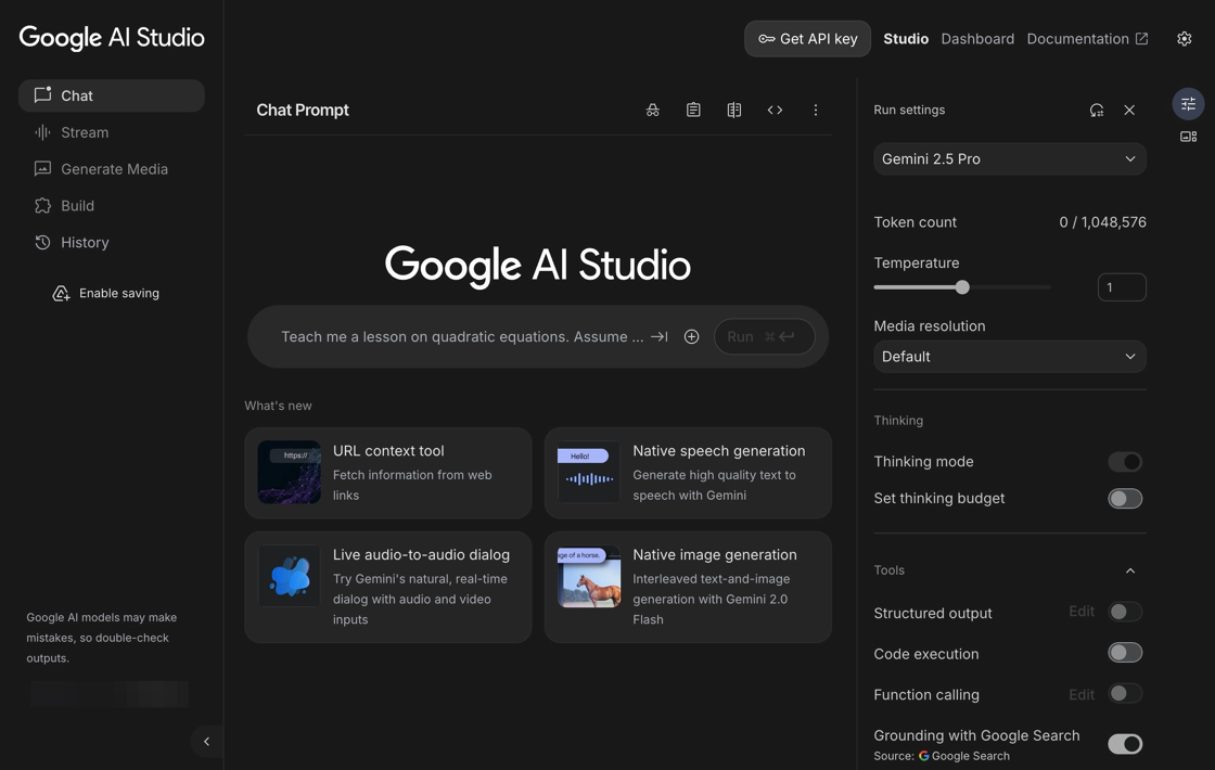 We recommend using Gemini's [playground](https://aistudio.google.com/u/2/prompts/new_chat) when testing with MESA's Create Chat Completion action. This allows you to try different models and prompts and will estimate the token cost for each automation.