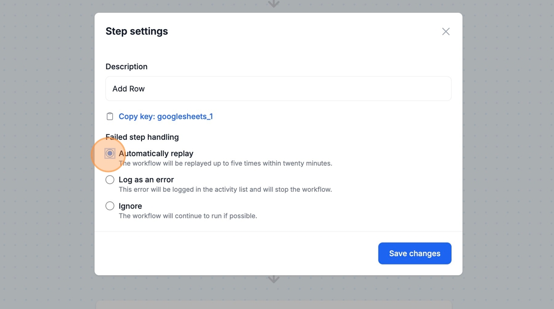 You can manually replay the task from the Activity tab in the workflow or set the error handling on your Google Sheets step to automatically replay failed tasks once so that you don't have to manually make updates each time.