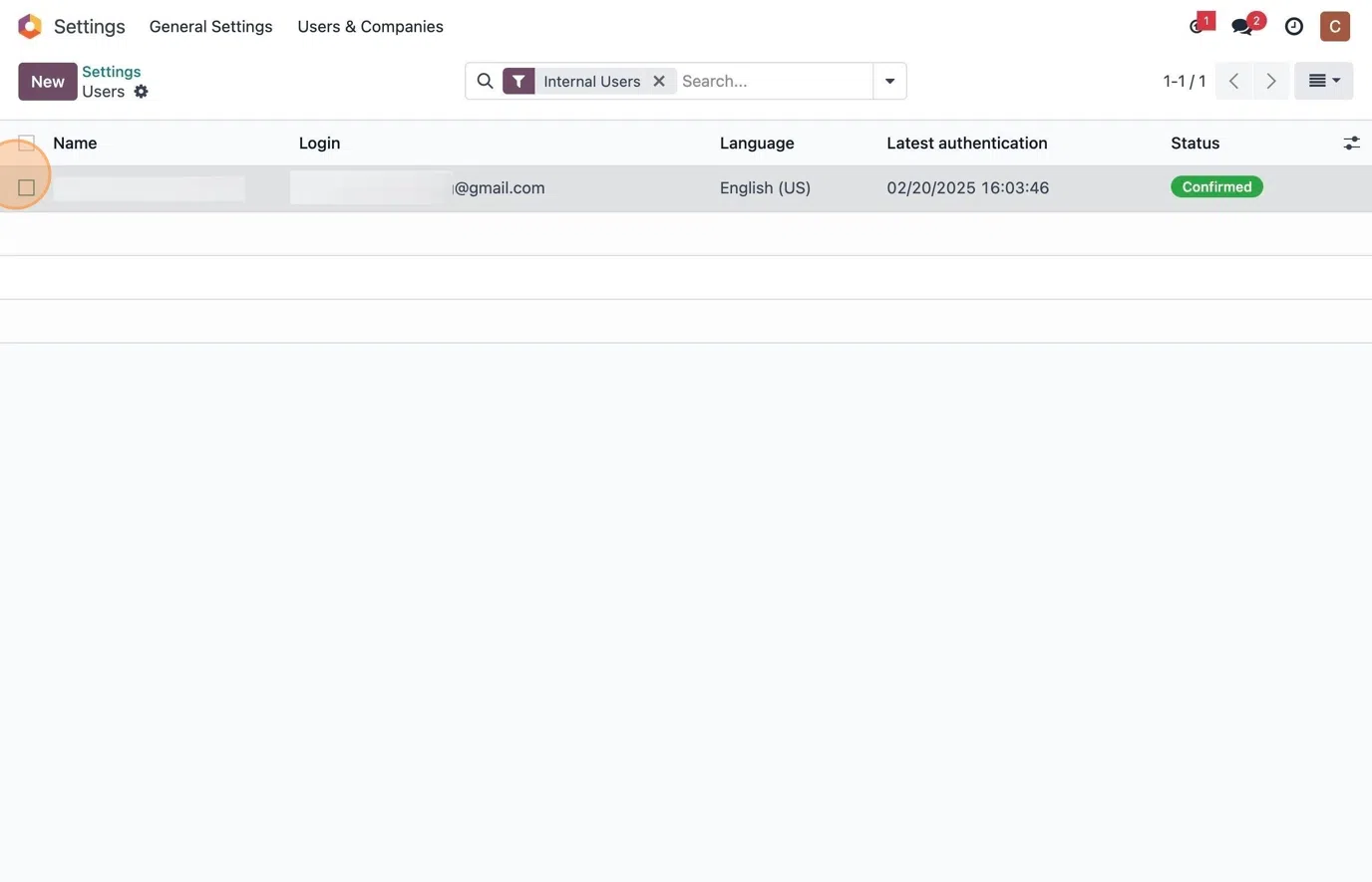 If a password already exists, copy the User Login email and paste it into the Username field in the Odoo Connection section of your Odoo step in MESA. Then, copy the existing password and paste it into the Password field in the same step.