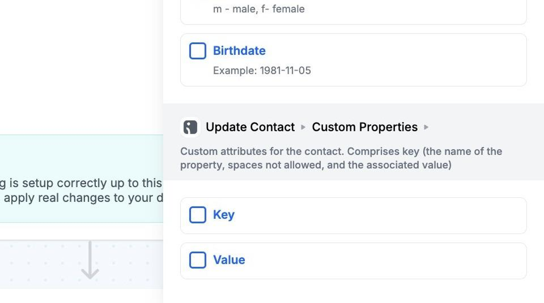 When using the Omnisend Update/Create Contact [actions](https://docs.getmesa.com/workflow-builder/actions), there is a section for Custom Properties.