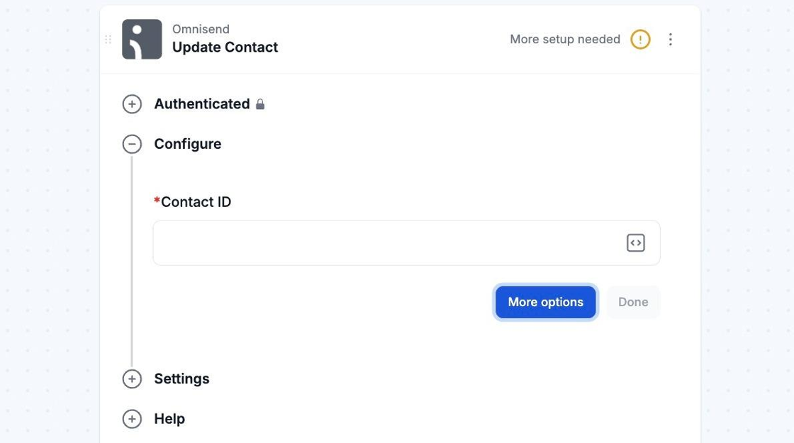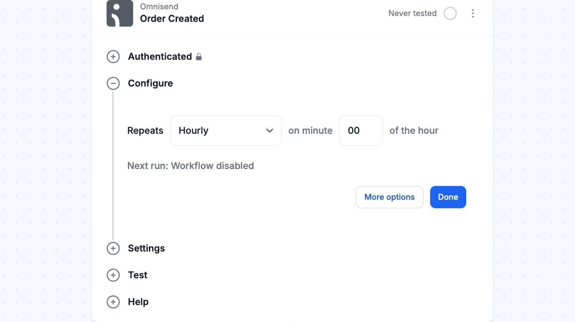 In Onmisend triggers, you can find the polling system within More options. You can keep the default frequency or adjust it.