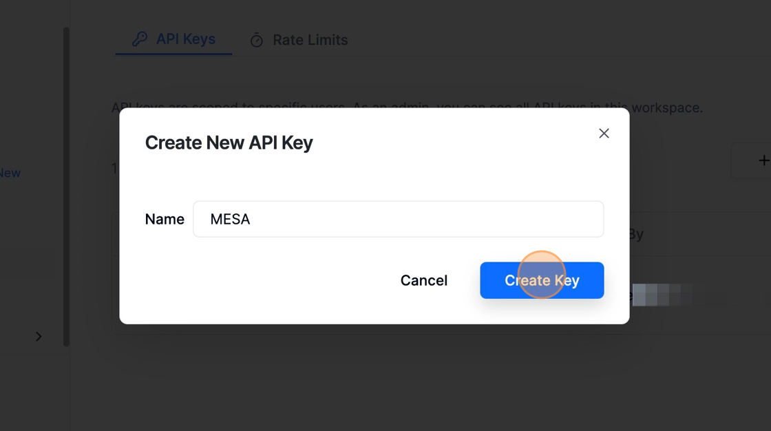 Type MESA for the name and then click the Create Key button.
