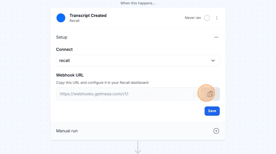 If you're using the Transcript Created trigger, you'll need to add an endpoint in Recall.