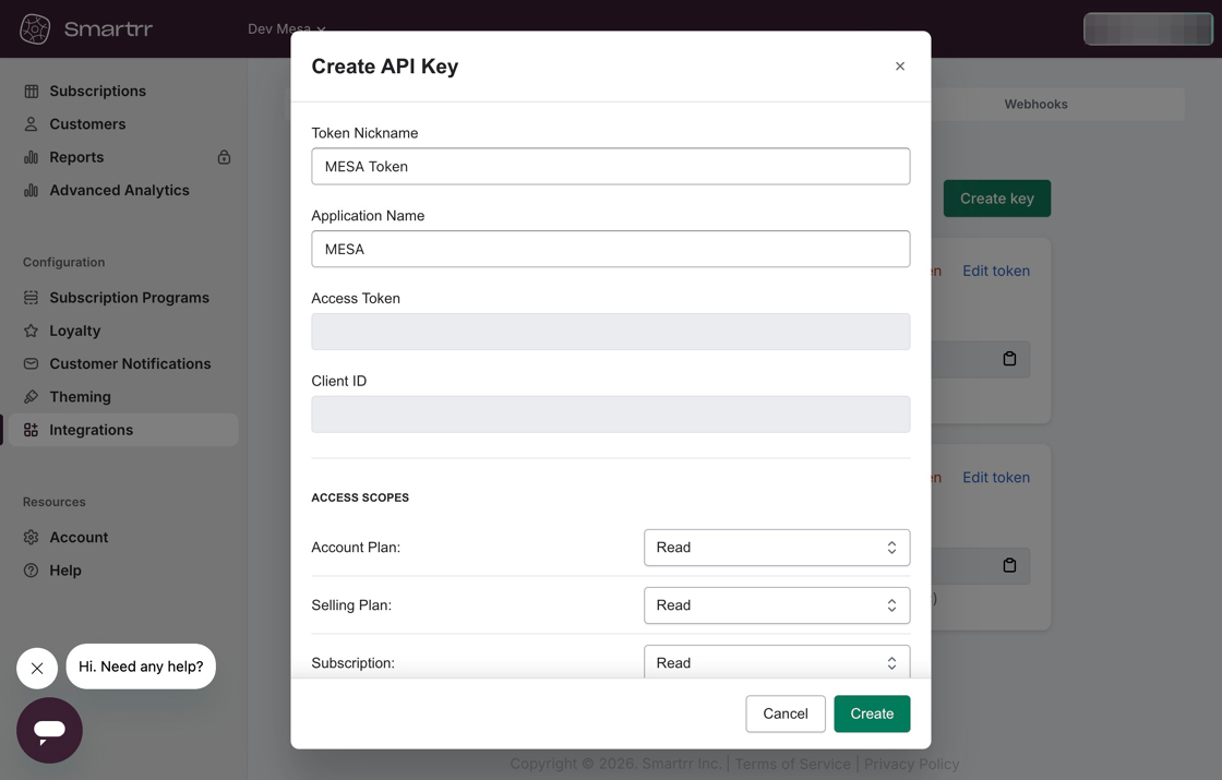 When you're setting up your first workflow with Smartrr, you'll need to connect MESA with Smartrr.