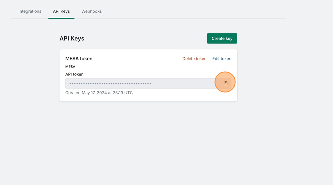 7. Afterwards, click on the clipboard to the right of your preferred API Key and click on Copy API Key.