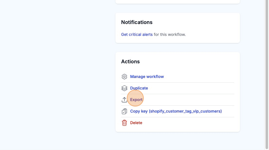[Connections](https://docs.getmesa.com/going-further/credentials) are not exported. Since in most cases, Connections are unique to each Shopify store. You will need to select a connection on steps that require it once a workflow has been imported into a different store.